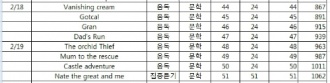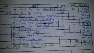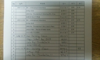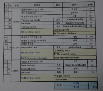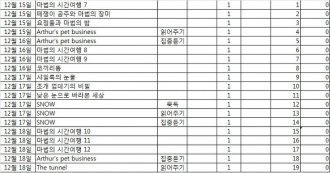 ³¯Â¥ Ã¥Á¦¸ñ ¹æ½Ä ºÐ¾ß ÀÏ °è ÇÕ°è ±Ç¼ö Âʼö ±Ç¼ö Âʼö 12.15 Peppa's dentist trip ¡¡ peppa ¡¡ 24 0 24 ¡¡ ¹ú·¹ÀâÀ̽Ű ¡¡ ¡¡ ¡¡ 47 0 71 ¡¡ »£ºü¶ó¹ã ºþ½º¸Ç5 ¡¡ ¡¡ ¡¡ 176 0 147 12.16 Roscoe Riley #1 ¡¡ ¡¡ ¡¡ 80 0 227 ¡¡ º´¸¸ÀÌ µ¿¸¸ÀÌ ¸¸¸¸ÀÌ-±¸¸Û³ºþ½º ¡¡ ¡¡ ¡¡ 55 0 307 ¡¡ º´¸¸ÀÌ µ¿¸¸ÀÌ ¸¸¸¸ÀÌ-µµµ¶´« ¼ý´« ¡¡ ¡¡ ¡¡ 56 0 362 ¡¡ Andrew's loose tooth ¡¡ ¡¡ ¡¡ 30 0 418 ¡¡ Peppa's dentist trip ¡¡ ¡¡ ¡¡ 24 0 448 12.17 °ËÀº Ȳ±Ý¼®À¯ ¡¡ ¡¡ ¡¡ 33 0 472 ¡¡ I'm the boss ¡¡ dinofours ¡¡ 30 0 505 ¡¡ Is a blue whale the biggest thing there is? ¡¡ wonderwise ¡¡ 32 0 538 ¡¡ Arthur's pet business ¡¡ A.a ¡¡ 30 0 570 12.18 È¿³àÁöÀº°ú ȶû È¿Á¾¶û ¡¡ ¿ª»ç ¡¡ 32 0 600 ¡¡ Arthur's Halloween ¡¡ a.a ¡¡ 30 0 632 ¡¡ Stellaluna ¡¡ ¡¡ ¡¡ 42 0 662 12.19 ¿ÀÁÜÀ» ¿¬±¸ÇÏÀÚ ¡¡ ¡¡ ¡¡ 42 0 704 ¡¡ room on the broom ¡¡ ¡¡ ¡¡ 26 0 730 ¡¡room on the broom