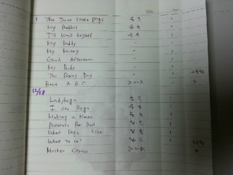 ³¯Â¥ Ã¥Á¦¸ñ 12¿ù 17ÀÏ Curious George Goes to the Hospital ¡¡ Young Cam Jansen and the Ice skate Mystery ¡¡ Doctor De Soto ¡¡ The Berenstain Bears Too Much Vacation ¡¡ Mr.Putter and Tabby Pick the Pears ¡¡ Mary Clare Likes to Share ¡¡ My Loose Tooth ¡¡ My new boy ¡¡ The Worst Helper Ever! ¡¡ Mouths ¡¡ My Grandpa ¡¡ A Day ¡¡ Children ¡¡ Water as a Solid ¡¡ Spring ¡¡ Sheep ¡¡ Sea Stars ¡¡ Guinea Pigs ¡¡ The Stars ¡¡ Watch Me Plant a Garden ¡¡ We Need Custodians ¡¡ I Want Two Birthdays ¡¡ Embarrassed ¡¡ Lonely ¡¡ Trucks ¡¡ Parents ¡¡ We need Veterinarians ¡¡ What is a Bird? ¡¡ Working ¡¡ Sisters ¡¡ Chickens ¡¡ I am Friendly ¡¡ The Shopping Basket ¡¡ Manners in the Lunchroom ¡¡ Santa Claus is Green! 12¿ù 18ÀÏ P.J.*****bunny Camps Out ¡¡ One Hundred Shoes ¡¡ The Berenstain Bears By the Sea ¡¡ Silly Sara ¡¡ Madeline's Christmas ¡¡ My Feet ¡¡ My Hands ¡¡ A Tree is a plant ¡¡ When I Feel Angry