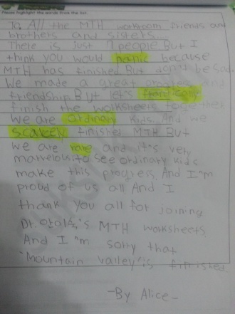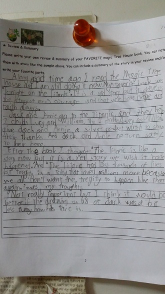 Today was the last day of the Magic Tree House worksheet.