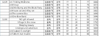 20141227(Åä) Good morning gorillas(¸ÅÁ÷Æ®¸®ÇϿ콺) À½µ¶,¹¬µ¶ éÅÍ 1 80 64 2393 ¡¡ õ°øÀÇ ¼º ¶óǻŸ ¿µÈ ¿µÈ ¡¡ ¡¡ 64 2393 20141228(ÀÏ) Frozen classic storybook collection À½µ¶ ¸®´õ½º 1 64 65 2457 ¡¡ Olivia and the snow day À½µ¶ ¸®´õ½º 1 24 66 2481 20141230(¿ù) Horrid henry and mooddy margaret(È£¸®µåÇ) Áýµè ¾ó¸®Ã©ÅÍ 1 76 67 2557 ¡¡ Moody margaret casts a spe..(È£¸®µåÇ) À½µ¶ ¾ó¸®Ã©ÅÍ 1 76 68 2633 ¡¡ Moody margaret's school(È£¸®µåÇ) À½µ¶,¹¬µ¶ ¾ó¸®Ã©ÅÍ 1 76 69 2709 ¡¡ ¾Æ¼ ¾îµåº¥Ã³ (50ºÐ) DVD DVD ¡¡ ¡¡ ¡¡ ¡¡