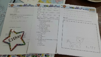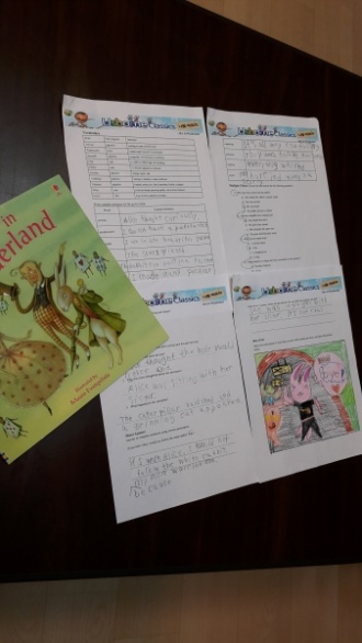 When I got the Alice in Wonderland, I really wanna teach the story to my monsters. I thought it would be little bit difficult for them so I tried to show the Korean video clip for the first time and to read the novel in English. I didn't know whatever they catched the whole story or not. So I just chose the creative section and said to draw the one of the favorite animals.