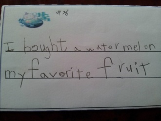 #26 : È¥ÀÚ¼ watermelonÀ» Àоú¾î¿ä. ÀÌ°É º¸¸é »ì¦ ÆÄ´Ð½º°¡ µÇ´Â°¡ ½Í±âµµ ÇØ¿ä. my favorite fruit´Â µû·Î ¶¼³»¼ Ç߳׿ä. ÀÇ¹ÌÆÄ¾Çµµ ÇÏ°í ¼ø¼µµ ¹Ù·Î Àâ°í.
