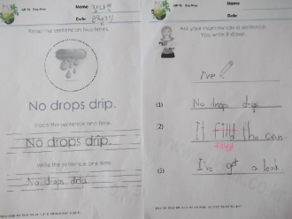 ¸Ç ¸¶Áö¸· ¹Þ¾Æ¾²±â´Â ¼ø¼¸¦ ¹Ù²ã¼ ºÒ·¯Áá´õ´Ï, I've got a leak´Â ¿Ïº®ÇÏ°Ô ¿Ü¿ö¼, It filled the can¿¡¼´Â filled¿¡¼ e¸¦ »©³ùÁö¸¸ ±×·¡µµ Àß ½è´Ù°í ĪÂùÇØÁá´ä´Ï´Ù. drip°ú dropÀº ¸¶±¸ Çò°¥·ÁÁּ̱¸¿ä. Á¤¸» ¿©·¯¹ø Å« ¼Ò¸®·Î ¿Ü¿öºÃ´Âµ¥µµ ¸·»ó ¾²·Á´Ï±î ¸·È÷³ªºÁ¿ä.