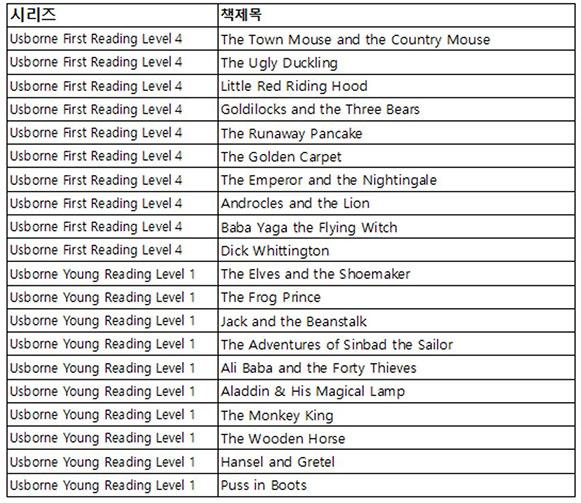 Usborne My Reading Library 50±Ç Áß Usborne First Reading Level 4 10±Ç, Usborne Young Reading Level 1 10±Ç ÃÑ 20±ÇÀ» ¼±Á¤ÇÏ¿© ³ª¸¦ µû¸£¶ó¸¦ ÁøÇàÇÕ´Ï´Ù.
