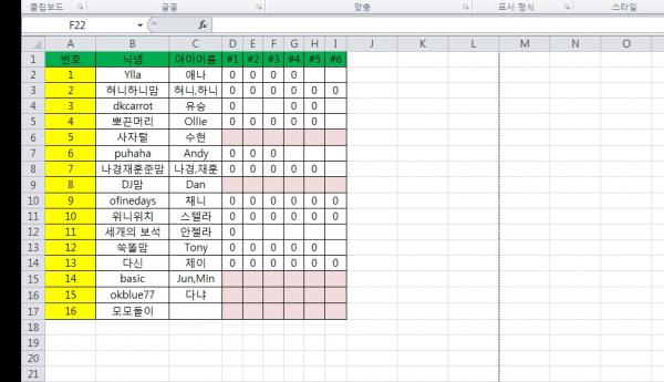 | 1 | Ylla | ¾Ö³ª | 0 | 0 | 0 | 0 | ¡¡ | ¡¡ |