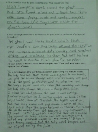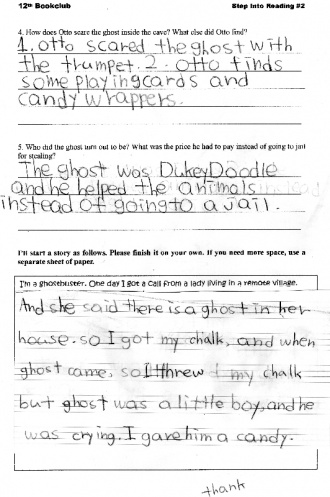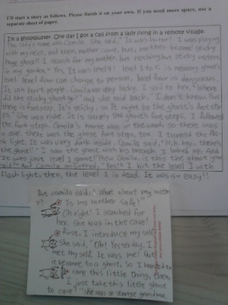 I¡¯m a ghostbuster. At halloween I got a call from a lady living in a remote village. She asked me to come to her house. I got to a village by car and there was lots of shops selling clothes for halloween, also there was lots of sculpture of scary things. Such as frankenstein, witches, monsters. I arrived at the lady¡¯s house and tried to encourage the lady to figure out what the ghost¡¯s real figure was, but the lady was so frightened and didn¡¯t tried to guess. She witnessed what she saw and a few other people said that they saw a ghost. Therefore I guessed it was not a real ghost. I went to the place where the lady saw the ghost and I hid. 5 hours later, a shadow was creeping out. It looked like a p***e of cloth which the figure was wearing. I ran out and hooked the cloth up and I found someone who was shocked. Because he never thought anyone could find him doing bad things. Surprisingly, there stood a boy who was the lady¡¯s son! The lady was so mad and they hurried back to their home forgetting to thank me. I thought the boy tried to enjoy the halloween but the lady was serious.
