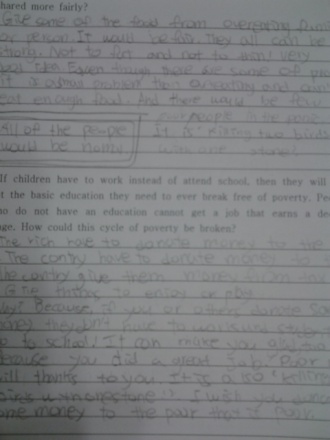 2.If children have to work instead of attend school, then they will not get the basic education they need to ever break free of poverty. People who do not have an education cannot get a job that earns a decent wage. How could this cycle of poverty be broken?