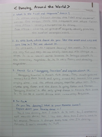 - Yes, I do. My favorite dance is K-pop star's dance. Especially, I like Girls generation's 'I got a boy.' It is the dance that the Girls Generation danced. It has the feel of Hip-Hop. And it's a very exciting.