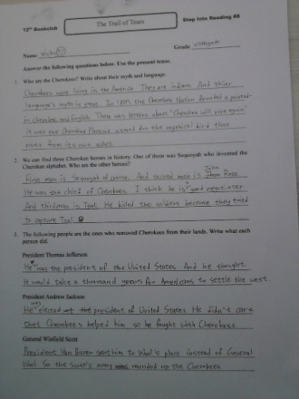 This book informs you about Native American Indians and how they were treated poorly in history.Reading this book will definitely increase your knowledge on American history.Also, I heard some of you guys have the other book in the Step into Reading series called To the Top.If you have that book, do Dr. Hong's assignment; if you have my book, do mine.