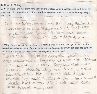 White Fang is one of the books I like very much, because it's an animal story, and it's a happy ending.